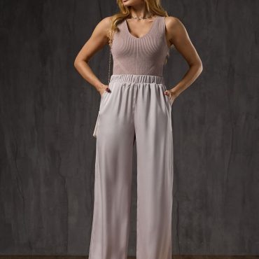 Silky Two Piece Set Women Wide Leg Pants