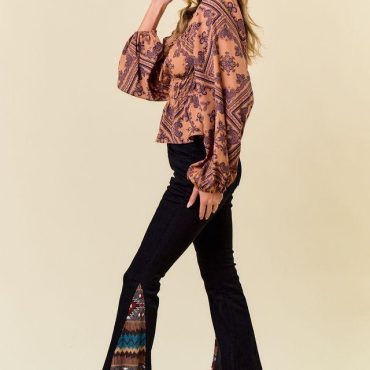 Black Western Style Flared Jean: Aztec Print Bell